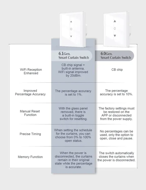 - 6.1 generacji. Ulepszenie – bardziej stabilny i dokładny chip 3.0 + wbudowany przełącznik resetowania + większa kompatybilność. Wskazówka: Do połączenia wymagane jest sieci 2,4 GHz. Przewód neutralny musi zostać podłączony.