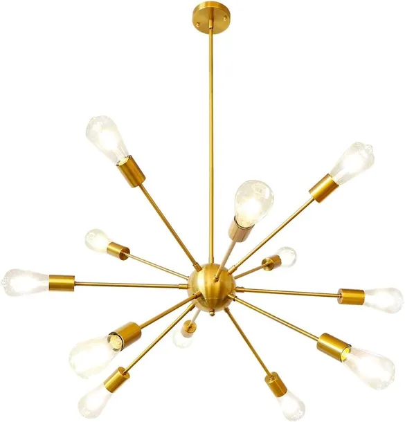 LynPon Sputnik Żyrandol Złoty Nowoczesny Mosiężny wisiorek Lampa sufitowa 12 świateł Oświetlenie przemysłowe Montaż do kuchni Jadalnia Salon Sypialnia [Klasa energetyczna A]